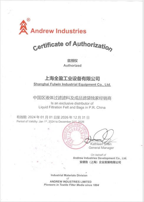上海全盈工業設備有限公司成立于 2001 年,經過多年的發展,已成為一家集開發、生產、銷售于一體的環保過濾技術企業。公司目前擁有2個基地,形成以上海工廠為研發基地,負責所有新產品的開發及小試,以安徽工廠為批量化生產基地,生產各種液體、除塵過濾產品及相關配件,井在國內獨家代理銷售英國Andrew(安德魯)公司液體濾袋。